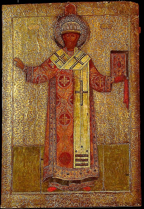 Сего ради молю тебя о сем, о священная глава, и честь моего царства преклоняю твоим честным мощам и повиную к твоему молению всю мою власть, да пришед простишь оскорбившему тебя напрасно и он тогда раскаялся о содеяном. За его покаяние и нашего ради прошения прийди к нам, святый владыко…[79]