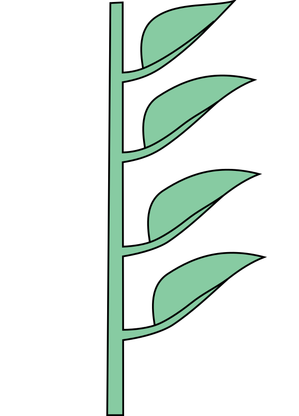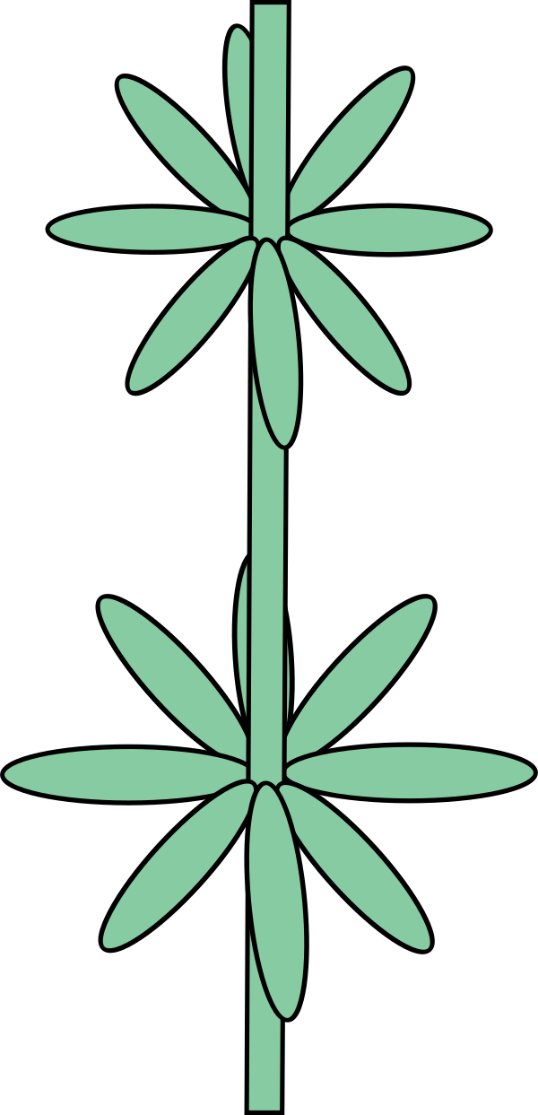 - На оси побега обнаруживаются вертикальные прямые ряды листьев, расположенных точно друг над другом — ортостихи. На побеге с мутовчатым листорасположением их число, как правило, в два раза больше числа листьев в мутовке. Число листьев на отрезке генетической спирали, ограниченном двумя следующими друг за другом листьями одной ортостихи, называют листовым циклом[9].
