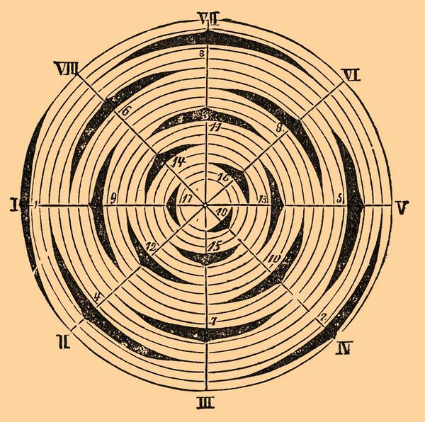 Изучая и сравнивая характер расположения листьев на стебле у различных групп растений, Браун и Шимпер открыли, что при спиральном листорасположении, наиболее характерном для высших растений, места прикрепления листьев подчиняются математическим закономерностям, которые они выразили в виде дроби: числителем дроби является число оборотов спирали, проведенное на стебле между двумя листьями, расположенными друг над другом на одной прямой, так называемой ортоcтихе, а знаменателем — число листьев (листовой цикл) на этой спирали, не считая последнего листа. Однако объяснение найденной закономерности немецкими и французскими ос- нователями учения о филлотаксисе было идеалистическим и основывалось на «извечном» плане строения растений[4].