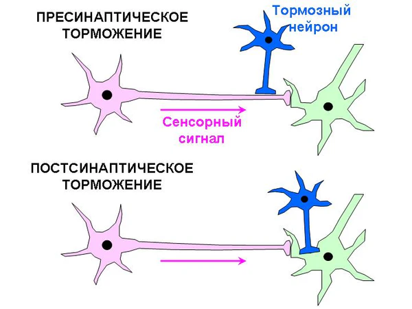 Одним из основных механизмов фильтрации сенсорной информации является торможение, которое производят ГАМК-ергические синапсы. Как правило, нейрон передающий сенсорную информацию, является возбуждающим. Например, аксоны зрительного нерва образуют возбуждающие синапсы на нейронах латерального коленчатого тела — зрительном ядре таламуса. (Исключением являются некоторые высшие отделы мозга, состоящие из тормозных нейронов, например стриатум. Однако, на этом этапе сенсорная информация уже подверглась значительной обработке). Фильтруют эти возбуждающие сигналы тормозные нейроны. Торможение может быть пресинаптическим (то есть блокирующим передачу сигналов по сенсорному аксону к какому-либо нейрону) либо постсинаптическим (гиперполяризующим нейрон, принимающий сенсорные сигналы). Постсинаптическое торможение позволяет блокировать сигналы избирательно, так как принимающая клетка остаётся способной отвечать на другие, незаблокированные воздействия.