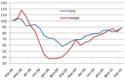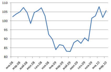 К апрелю 2010 года в российской обрабатывающей промышленности практически не осталось отраслей, находящихся в рецессии.[107]