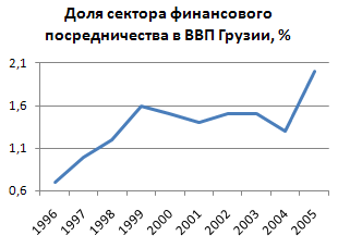 На 2005 год, доля сектора финансового посредничества в ВВП Грузии составляла 2 %[1].