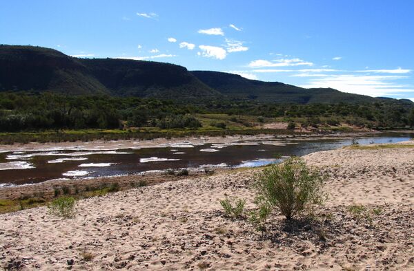 Тем не менее, южные части течения Финке намного моложе, поскольку районы, по которым Финке протекает сейчас у южного края Северной территории и дальше на юг, находились под морем в мезозойскую эру[8], как часть Большого Артезианского бассейна.