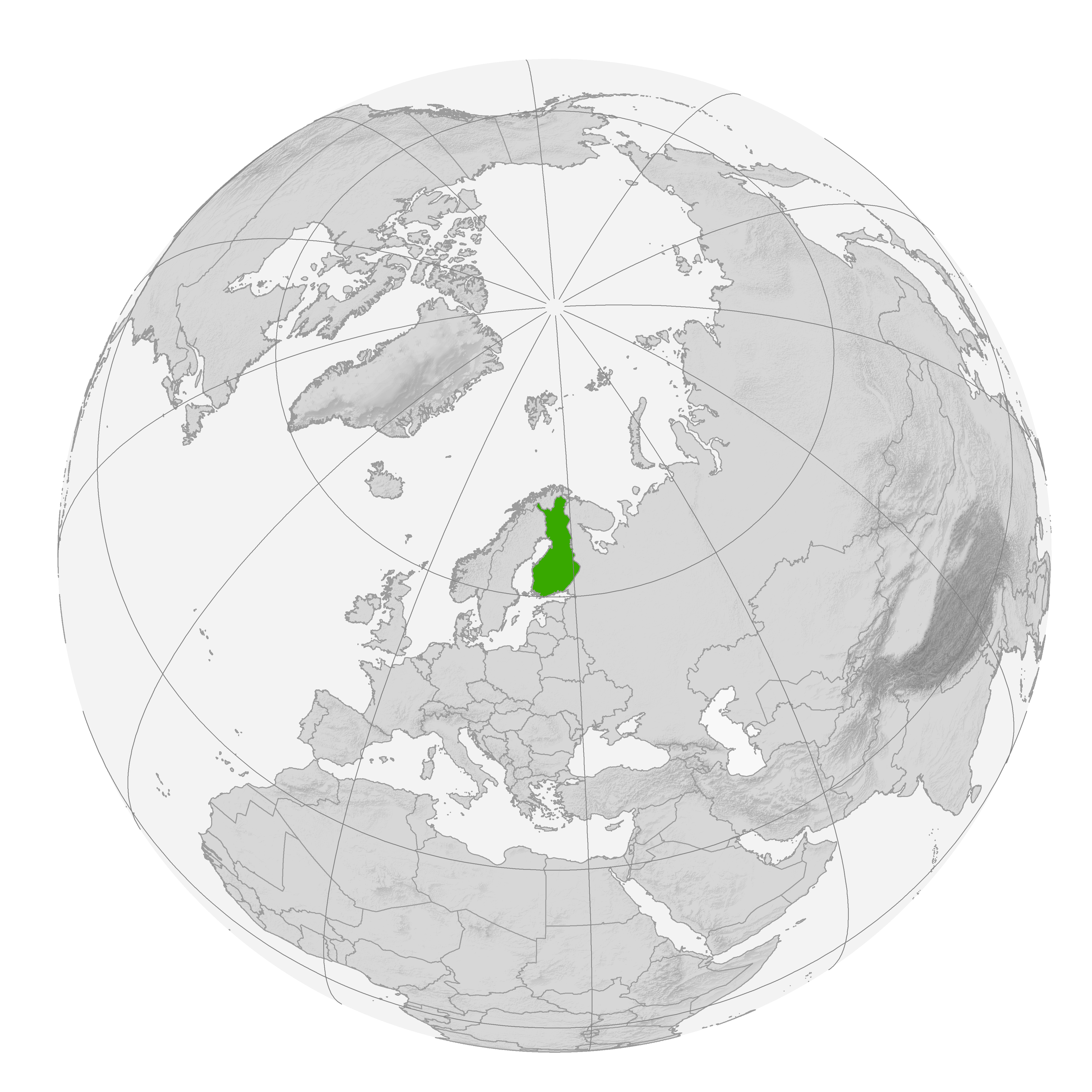 Финляндия расположена на севере Европы, значительная часть её территории находится за Северным полярным кругом (25 %). На суше граничит со Швецией (граница составляет 586 км), Норвегией (граница составляет 716 км) и Россией (граница составляет 1265 км), морская граница с Эстонией проходит по Финскому заливу, со Швецией — по некоторым местам Ботнического залива Балтийского моря.