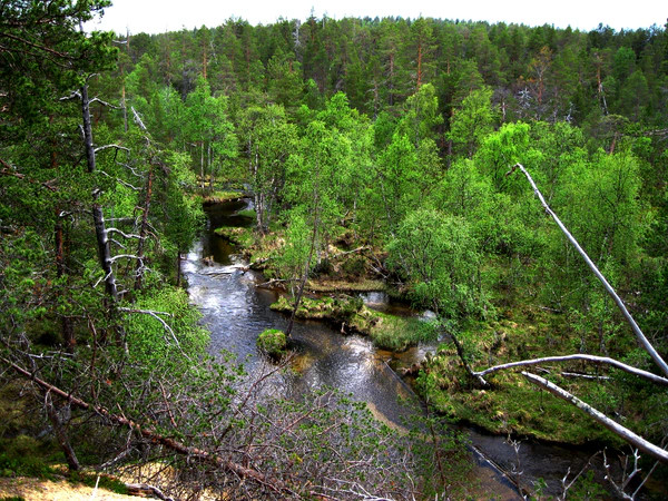 - Северные верховья, большая часть которых расположена за Северным полярным кругом. Отличаются довольно бедными почвами. Для Лапландии также характерны скалистые горы и небольшие возвышенности. Там же, в западной части Лапландии, находится высшая точка Финляндии (1324 метра над уровнем моря) — она расположена на склоне сопки Халти. Вопреки распространённому заблуждению, эта точка не является вершиной сопки (вершина Халти имеет высоту 1365 м и находится на территории Норвегии). Ранее в справочниках в качестве самой высокой точки Финляндии указывалась величина 1328 м; позже было определено, что склон Халти, имеющий такую высоту, тоже находится на территории Норвегии, высшая же точка на финском склоне находится на высоте 1324 м[43].