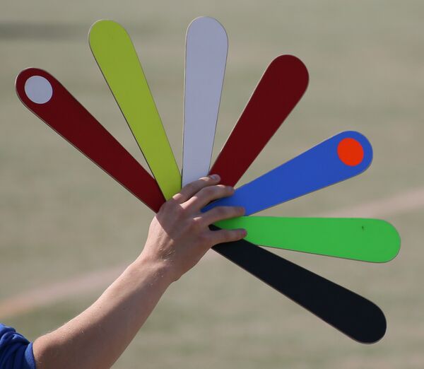 - Нападающая команда использует цветные пластины (веер), чтобы давать указания игрокам. Обычно её использует тренер команды. Значения цветов определяются до начала игры.