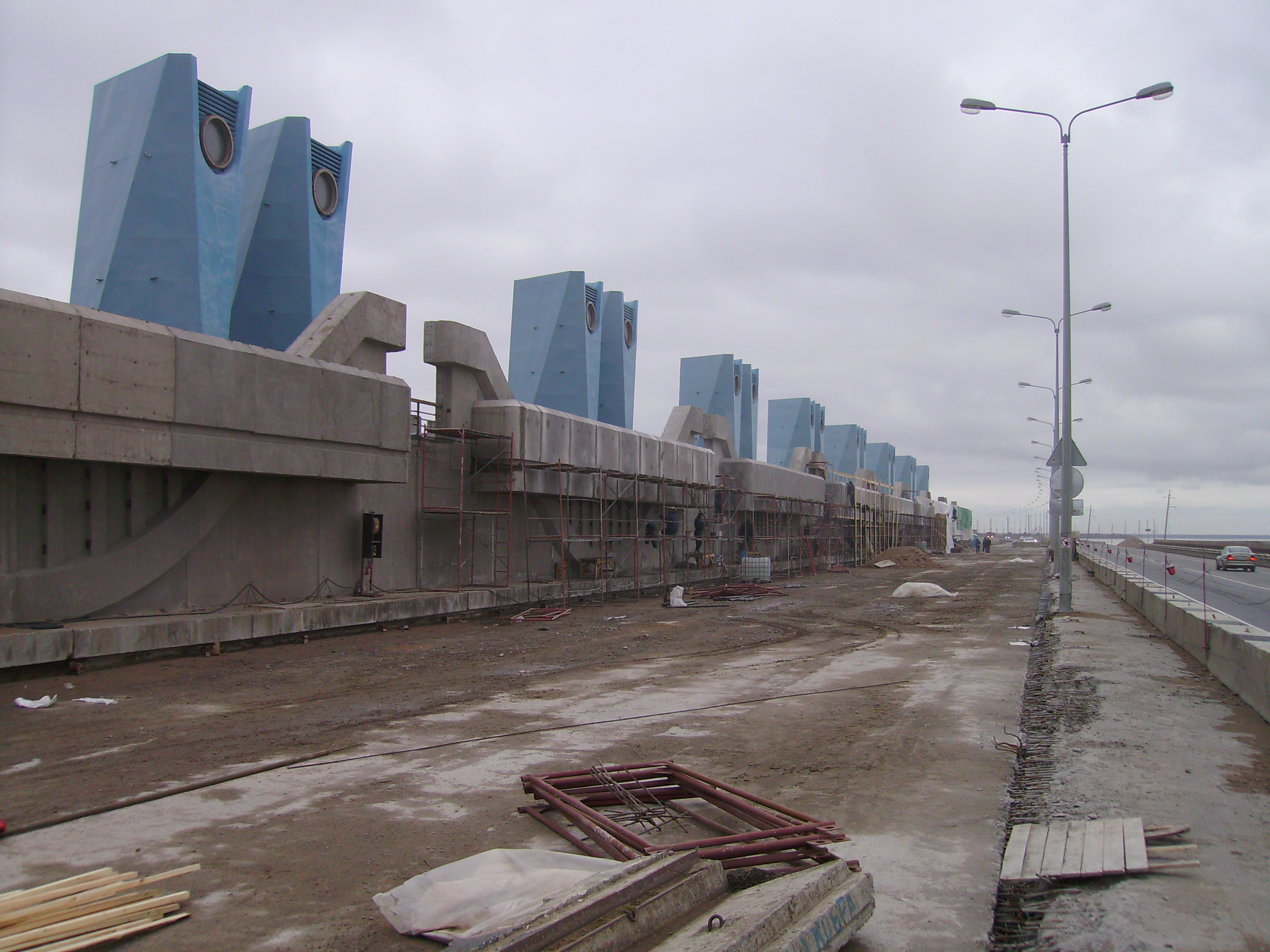 В 1979—2011 годах в восточной части Финского залива велись работы по строительству Комплекса защитных сооружений Санкт-Петербурга от наводнений. Дамба несёт защитные и транспортные функции. Вся дамба является частью КАД[42].