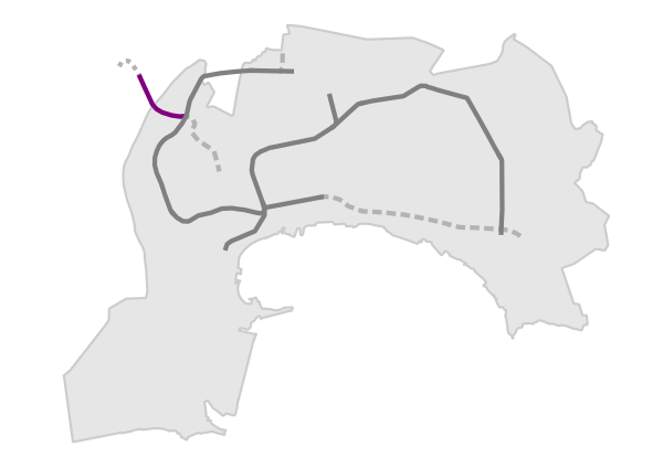 Фиолетовая линия является первым приоритетным направлением строительства Бакинского метрополитена. В данный момент продолжается строительство станции В-4 и депо. В будущем линия свяжет Баладжары с Карачухуром и будет состоять из 12 станций и 1 депо[2].
