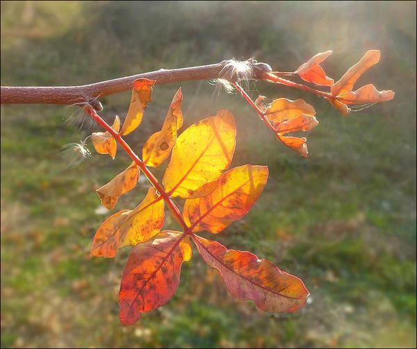 Листья сложные, непарноперистые, состоят из пяти—семи листочков, черешок в верхней части крылатый; листочки яйцевидные, почти сидячие, сверху блестящие, тёмно-зелёные; края пластинок короткоопушённые, длина листочков 4—5 см, а ширина — до 3 см; листья развёртываются в начале мая, опадают в ноябре.