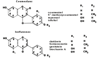 Классическим примером гормонального влияния фитоэстрогенов на млекопитающих стала «клеверная болезнь», встречающаяся у овец и других пастбищных животных. Фермеры заметили, что у овец, питающихся преимущественно клевером вида Trifolium subterraneum, часто возникают бесплодие и другие нарушения репродуктивной функции. Причиной тому выступили изофлавоны, которые оказывают на овец гормоноподобное действие.