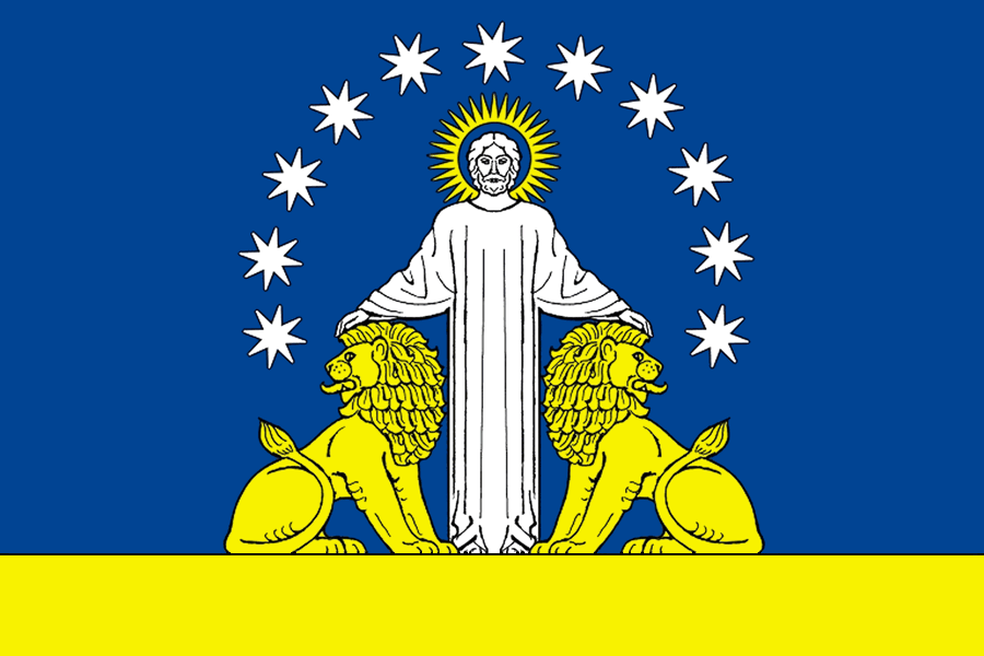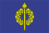 Не внесён | Прямоугольное полотнище в пропорциях 2:3, разделённое по горизонтали на красную, синюю и жёлтую полосы в пропорциях 4:1:4. | Автор — Ю. М. Курасов. |