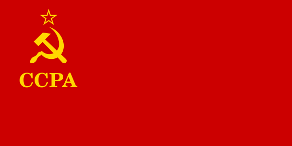 Государственный флаг Автономной Социалистической Советской Республики Абхазии состоит из красного или алого полотнища с изображением в его верхнем углу у древка золотых серпа и молота и над ними красной пятиконечной звезды, обрамленной золотой каймой, под которой внизу надпись: «АССРА». Отношение ширины к длине 1:2[2].