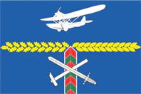 В верхней части полотнища помещено изображение белого, полуобращённого к древку, самолёта-амфибии серии Ш-2. Габаритные размеры изображения составляют 11/24 длины и 3/10 ширины полотнища. Центр изображения равноудалён от боковых краёв полотнища и находится на расстоянии 1/5 ширины полотнища от его верхнего края.