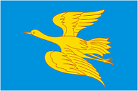 «Флаг представляет собой прямоугольное голубое полотнище с отношением ширины к длине 2:3, несущее посередине изображение жёлтого летящего к древку журавля».