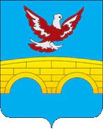 Прямоугольное двухстороннее полотнище голубого цвета с отношением ширины к длине 2:3, с зелёной полосой вдоль нижнего края (в 1/7 ширины полотнища) на которой стоит жёлтый каравай с белой солонкой; к верхнему краю примыкает белое облако, из которого выходит длань.