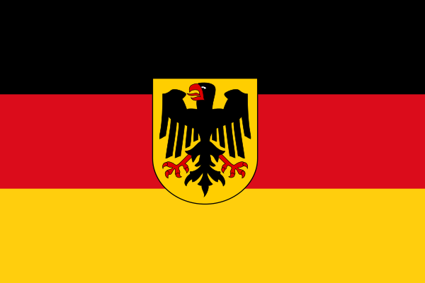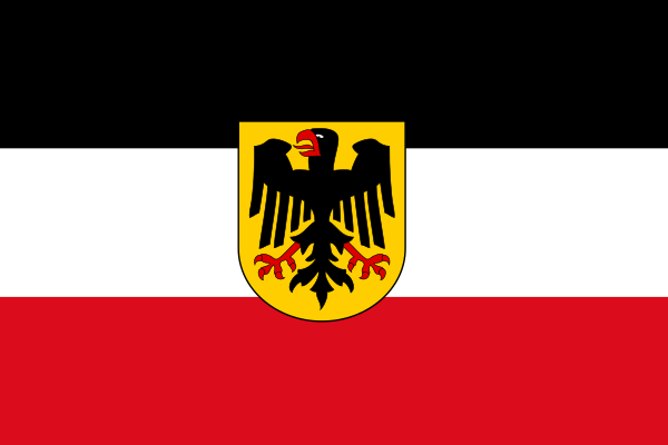 - Государственный военный флаг (нем. Reichskriegsflagge) — по прежнему образцу со следующими отличиями: в середине новый государственный орёл (нем. Neuer Reichsadler), в крыже государственных цветов — Железный Крест.