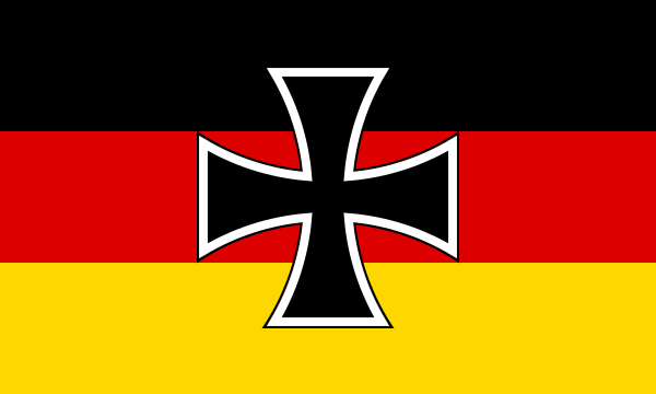 3. Торговый флаг с Железным Крестом (Handelsflagge mit dem Eisernen Kreuz) — такой же, как торговый флаг, но с изображением в верхнем углу, у древка, на государственных цветах, чёрного, окантованного белым креста в виде Железного Креста, который достигает половины ширины чёрной и половины ширины золотисто-жёлтой полосок.