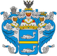 Геральдическое описание герба гласит: «В лазоревом синем, голубом) поле золотой столб, сопровождаемый по сторонам двумя сообращёнными восстающими серебряными волками с червлёными вооружениями и такими же глазами».