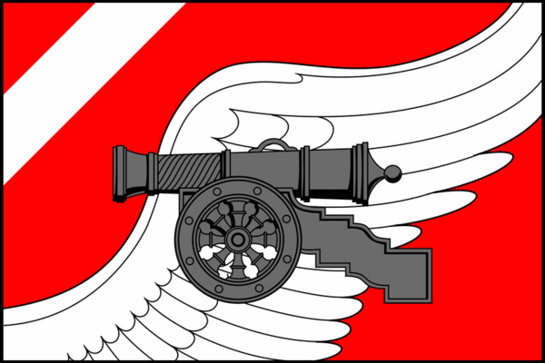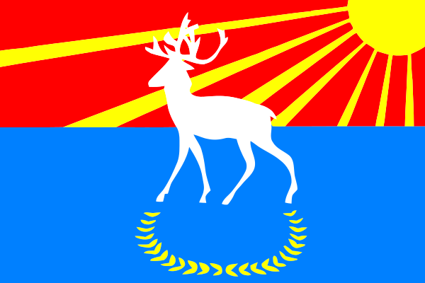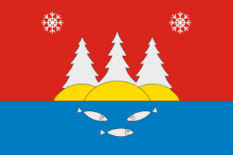 Прямоугольное полотнище с отношением ширины к длине 2:3, разделённое на равные части по ширине: красное (верхнее) и синее (голубое) (нижняя части), с двухсторонним изображением в центре элементов герба муниципального образования.[3]
