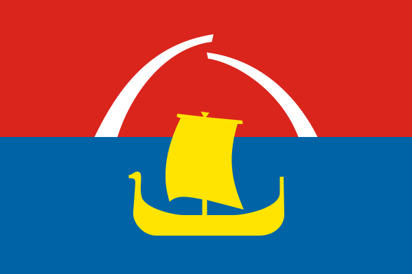 Геральдическое описание герба гласит: «В пересечённом червлёном и лазоревом поле золотая парусная ладья и над ней в червлени серебряная дуга, выходящая снизу, расторгнутая посередине и слева пониженная».[4]