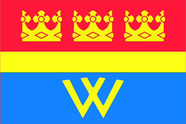 Геральдическое описание (блазон) герба гласит: «Поле пересечено на червленью и лазурью. В червлени три короны, одна и две, золотые, с самоцветами разных тинктур по ободу и с пятью видимыми зубцами: тремя большими листовидными и между ними — двумя меньшими, завершёнными серебряными жемчужинами. В лазури — золотая литера „W“».