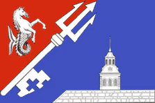 Геральдическое описание герба гласит: «В скошенном слева червлёном (красном) и лазоревом (синем, голубом) поле поверх деления — серебряный ключ с бородкой влево, и ушком наподобие трезубца, сопровождённый в червлени обращённым серебряным морским конём, а в лазури возникающей снизу и выходящей слева серебряной стеной, сложенной из камней разной формы, справа отвлечённой и скошенной; на которой — серебряная двухъярусная башня со сводчатой кровлей каждого яруса и шпилем».