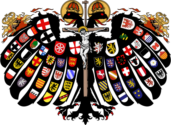 - С 1410 по 1806: чёрный двуглавый орёл с красным клювом и когтями на золотом фоне. Двуглавый орёл символизирует королевскую и императорскую власть.