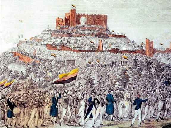 На «Вартбургском празднестве» 18 октября 1817 года впервые явились впоследствии запрещённые студенческие цвета как символы германского национального единства[10].