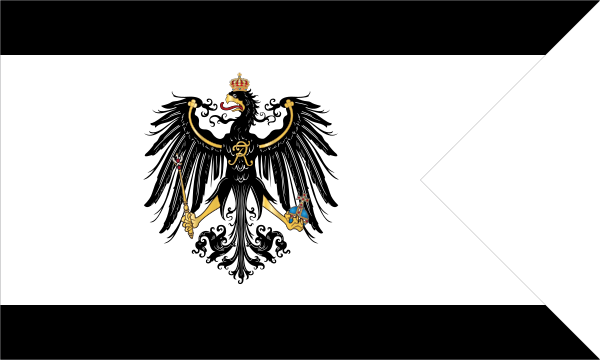 Указом короля Пруссии Вильгельма I от 4 июля 1867 года, объявленным приказом кабинета прусского королевского двора от 10 сентября 1867 года, были утверждены военный флаг (нем. Kriegsflagge) и гюйс Королевства Пруссия. Гюйс представлял собой чёрно-бело-красное прямоугольное полотнище с отношением ширины к длине как 2 к 3, с изображением большого Железного Креста, несколько смещённого к шкаторине. Военным флагом было утверждено белое полотнище с чёрным крестом с чёрно-белой обводкой, в центре которого был изображён белый круг с чёрным прусским орлом. В крыже было помещено изображение гюйса. Отношение ширины полотнища к его длине как 3:5. Этот кормовой флаг и гюйс 1 октября 1867 года стал военным флагом и гюйсом Северогерманского союза[15].