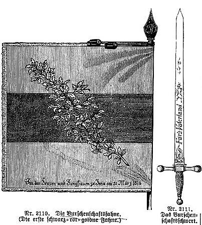 Своё закрепление чёрно-красно-золотое сочетание цветов получило в символике первого общегерманского Студенческого братства (нем. Urburschenschaft), созданного в 1815 году в Йенском университете (герцогство Саксен-Веймар-Эйзенахское) с идеями строительства общегерманского государства.