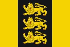 Геральдическое описание герба гласит: «В чёрном поле с золотыми боковиками три золотых леопарда (идущих и обернувшихся прямо льва) с червлёными (красными) вооружениями, один под другим».