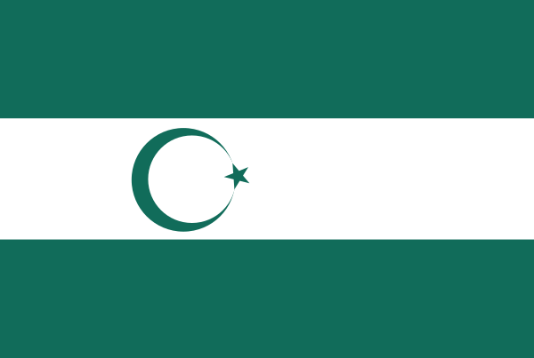 Флаг Северо-Кавказского эмирата представлял собой зелёное полотнище с белыми полумесяцем и тремя звёздами над ним. Отношение длины полотнища флага к его ширине на изображениях близко к 2:1.