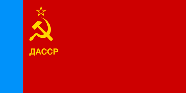 По Конституции ДАССР 1937 г. Государственным флагом республики являлся Государственный флаг РСФСР, состоявший из красного полотнища со светло-синей полосой у древка во всю ширину фланга. В левом углу красного полотнища были изображены серп и молот и над ними пятиконечная звезда, обрамленная золотой каймой. Над серпом и молотом была помещена надпись золотыми буквами «ДАССР» на русском, аварском, кумыкском, лезгинском, азербайджанском, лакском, татском, табасаранском языках.