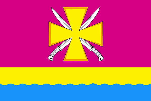 — синяя волнистая полоса символизирует многочисленные реки района, крупнейшая из которых — Кубань. Практически все водоёмы пригодны для рыбохозяйственных целей и обустройства спортивных баз для любительского лова рыбы.