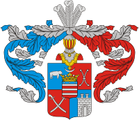 Геральдическое описание герба гласит: «В поле выгнуто пересеченном червленью (красным) и лазурью (синим, голубым) двумя парами серебряных якорных лап в пояс, обращённых в разные стороны, соединённых посередине серебряным кольцом и вписанных по сторонам, причём верхняя пара якорных лап положена по линии деления поля; в лазури- золотой якорный крест, четверочастно расторгнутый таким же трилистным крестом с дамасцировкой».