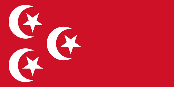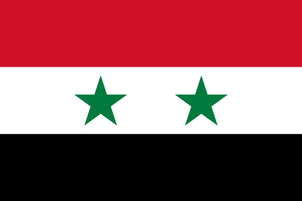 Соотношение сторон 2:3. Представляет собой триколор с горизонтально размещёнными равновеликими полосами красного, белого и чёрного цветов. В центре флага на белой полосе помещён т. н. «орёл Саладина». Выполнен в панарабских цветах.