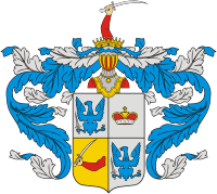 Золотой месяц и лук — взят с герба рода дворян Мамаевых, которые владели усадьбой Кожаково, им принадлежал лесопильный завод.