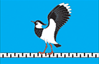 «Прямоугольное голубое полотнище с отношением ширины к длине 2:3, с изображением фигур герба города: чибиса с воздетыми крыльями выполненного белым, чёрным и красным цветом, стоящего на белой горизонтальной полосе с чёрными засечками (ширина полосы в 1/13 полотнища) отстоящей от нижнего края на 1/9 ширины полотнища».