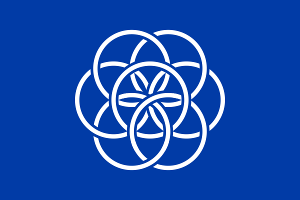 Флаг представляет собой изображение семи колец, пересекающих друг друга, на тёмно-синем фоне. Изображения пересекающихся колец образуют в середине цветок, символизирующий жизнь на Земле, а пересечение колец символизирует, что всё на Земле прямо или косвенно связано. Тёмно-синий фон символизирует океан и важность воды для жизни на Земле.