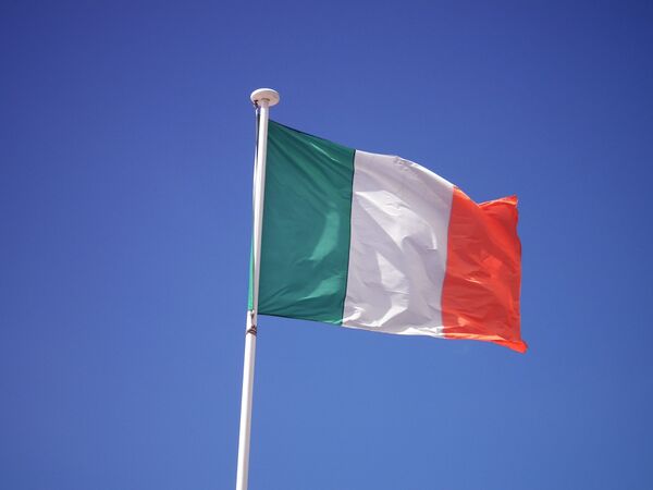 Государственный флаг Ирландии представляет собой зелёно-бело-оранжевый триколор. Длина флага вдвое больше ширины, три цветные полосы равны по ширине, зелёная находится у древка.