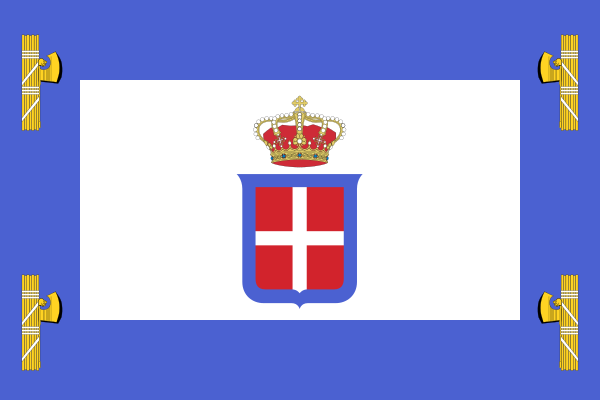 В объединённом Итальянском королевстве (1861—1946) в качестве национального [этнического] флага был принят всё тот же вертикальный зелёно-бело-красный «триколор» без герба, а в качестве государственного флага Королевства Италия — государственный флаг Сардинского королевства 1848 года. Однако вскоре данный государственный флаг подвергся небольшому изменению — во избежание слияния белого и красного цветов герба с такими же цветами на флаге, на династический герб была добавлена синяя кайма[1]. Государственный флаг Итальянского королевства являлся одновременно и его военно-морским флагом.