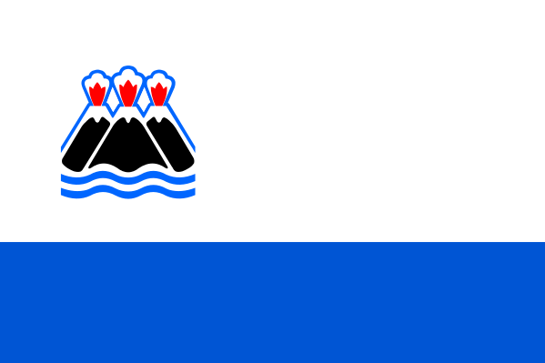 «Флаг Камчатской области представляет собой прямоугольное полотнище из двух горизонтальных полос: верхней — белого, нижней — синего цвета.