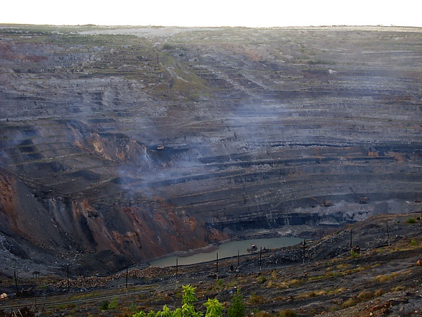 Так и образование угля начиналось с папоротника, который рос миллионы лет назад, затем постепенно превращался в уголь. Угольный карьер аллегорически изображён спиралью, но читаемой от центра. Спираль — символ развития, вечного изменения. Развитие совершается по принципу спирали и всё приходит в исходное состояние, но на более высоком уровне развития.
