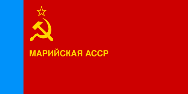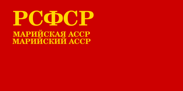 21 июня 1937 года Чрезвычайным 11-м съездом Советов МАССР принята Конституция республики. Согласно этой Конституции флагом МАССР было красное полотнище с золотыми надписями: «РСФСР» и «Марийская АССР». Конституция не содержала информации о языках надписей. В статье 112 Конституции Марийской АССР редакции 1949 года указано, что надписи на флаге выполнены на русском и марийском языках.