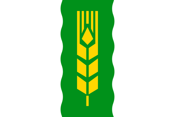 Вертикальная волнистая зелёная полоса символизирует зелёное поле.