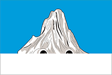 «Флаг представляет собой прямоугольное полотнище с отношением ширины к длине 2:3, составленное из двух горизонтальных полос: голубой — в 5/7 полотнища и белой — в 2/7; посередине голубой полосы вплотную к белой изображена белая гора с двумя чёрными норами».