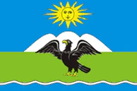 «Прямоугольное полотнище с отношением ширины к длине 2:3, воспроизводящее композицию герба в синем, зелёном, чёрном, белом и жёлтом цветах».