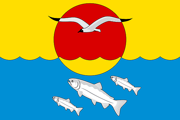 Рыба символизирует изобилие и благополучие городского округа. Символика рыбы неотделима от символики воды и означает всеобщее обновление природы. Кета — главное богатство моря изображена в нижней части флага.