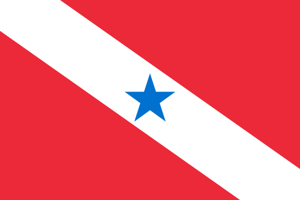 Флаг бразильского штата Пара представляет собой прямоугольное полотнище красного цвета, по диагонали которого проходит белая полоса, в центре этой полосы расположена синяя пятиконечная звезда.