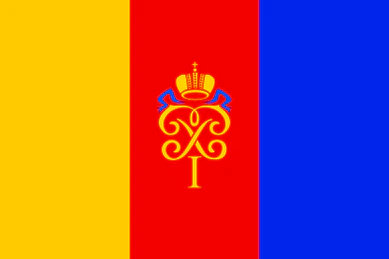 «Флаг муниципального образования город Петергоф представляет собой 3-х цветное полотнище с отношением ширины к длине 2:3 с расположением от древка равных вертикальных полос соответственно золотистого, красного и лазурно-голубого цветов, с односторонним изображением посередине, на центральной красной полосе золотистого коронованного вензеля имени Петра Первого под золотистой императорской короной с лазурно-голубыми лентами, как основного элемента герба города Петергофа. Габаритная высота основного элемента герба составляет 1/2 высоты флага».